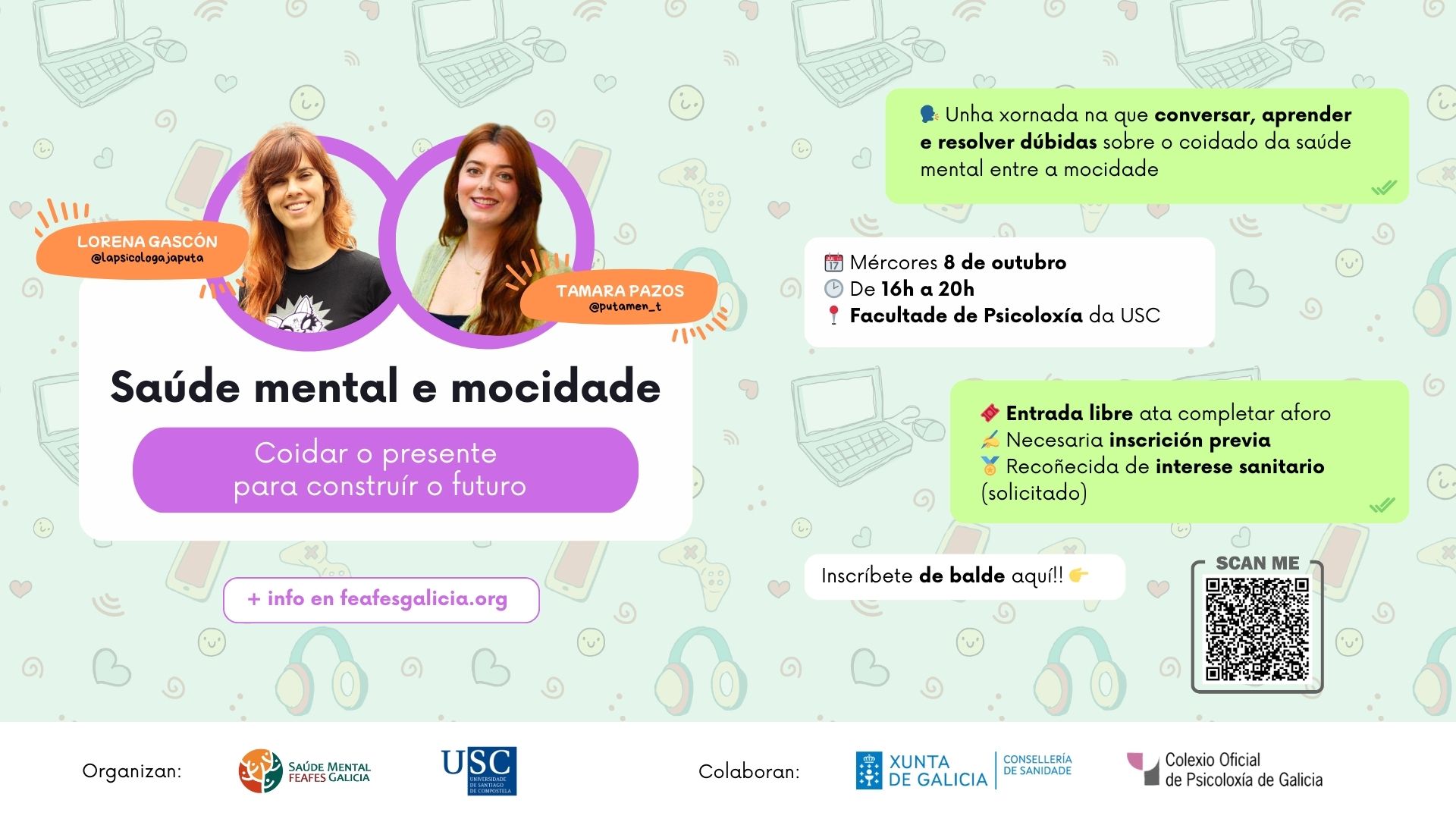 08.10.2025 | 16.00h-20.00h Facultade de Psicoloxía Fac. de Psicoloxía. Módulo A Salón de actos Saúde mental e mocidade