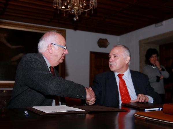O alumnado do máster en Xerontoloxía da USC terá a oportunidade de realizar as súas prácticas profesionais en máis de 50 centros especializados repartidos por toda España grazas ao convenio de colaboración que este martes asinaron en San Xerome o reitor Juan Casares e o director da Fundación Sar/Quavitae, Javier Jiménez Calavia. Ademais, o acordo establece un intercambio de expertos para aquela parte da docencia teórico-práctica especializada que fose precisa. A Fundación pon a disposición da USC nove centros en Madrid e os mesmos en Cataluña, cinco en Baleares e outros tantos en Euskadi, dez en Andalucía e máis espallados por Estremadura, Comunidade Valenciana, Aragón, Asturias, Castela A Mancha, Castela e León e Cantabria. A estes hai que sumar os centros Castro de Ribeiras do Lea (Lugo), Concepción Arenal da Coruña e San Lázaro de Santiago de Compostela. Coas prácticas o alumnado terá un contacto directo coa asistencia ás persoas maiores en distintos niveis asistenciais e aprenderá importantes cuestións sobre a súa planificación e xestión. Así, coñecerá cómo se articulan e funcionan os servizos de atención directa e outros como a gobernanza, cociña, administración ou xestión de compras que, sen ser de atención directa, son imprescindibles na asistencia de calidade á persoa maior. Por outra banda, baixo a supervisión e responsabilidade dos docentes da titulación e dos profesionais dos centros, o alumnado poderá levar a cabo programas de intervención non invasivos como serían programas de adaptación ao centro, de estimulación cognitiva ou de hábitos saudables. O convenio asinado estará dirixido ao alumnado do máster en Xerontoloxía. Foto: Servimav-USC