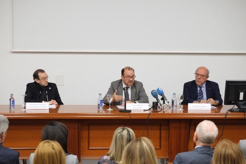 De esquerda a dereita, José Alberto Díez, Antonio López e Julián Álvarez. Foto:Servimav-USC A presentación do novo equipamento realizouse nun acto na Aula Castelao de Medicina. Foto:Servimav-USC