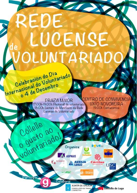 Baixo o lema ‘Cóllelle o gusto ao voluntariado’, a Rede Lucense de Voluntariado, que agrupa nove entidades da capital luguesa (Fundación Secretariado Xitano, Cáritas Diocesana, Aspnais, Fundación Juan Soñador, Asociación Xuvenil Ateibo, Auxilia, Down Lugo, Cogami Lugo e Aliad-Ultreia) e a Universidade de Santiago, promove conmemorar esta efeméride unha xornada lúdica e unha sesión de contacontos.