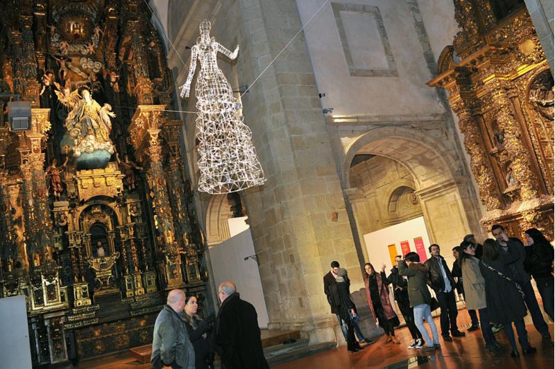 En 2001 a Universidade de Santiago puxo en marcha un orixinal proxecto cultural no que novos e novas artistas expoñían no coro da Igrexa Universitaria unha serie de instalacións realizadas ex profeso para ese espazo. Por alí pasaron nomes descoñecidos que hoxe xa se fixeron un oco no panorama artístico actual. Unha década máis tarde –Procesalia desenvolveuse ata 2003–, a Universidade compostelá fai unha relectura deses artistas e das súas obras de maneira que o resultado é unha mostra de arte contemporánea conformada por pezas realizadas para o peculiar espazo que é, nesta ocasión, a totalidade da Igrexa da Universidade. A exposición consegue así pór en valor o patrimonio histórico deste marco arquitectónico, non só convivindo con el senón tamén recreándoo, subliñando a súa presenza e actuando sobre el. 19 artistas en Procesalia 2013 Nesta nova edición reúnense Ana de Matos, Antón Caamaño, Carlos Sena Caires e Jorge Cardoso (VOID), Rosa Sánchez e Alain Bahuman (Kónic), Kai Takeda, Isaac Cordal, Paula Mariño, Xoan Anleo, Xoán Brión, Eduardo Valiña, Manuel de la Rosa, Carme Nogueira, Monse Rego, Carme Nogueira e Rubén Santiago. Ademais, convídanse dous novos artistas: Marta Prieto e Nilo Arias. Son 19 creadores do ámbito galego, estatal e internacional de recoñecido prestixio que crearon obras feitas e inspiradas no espazo da Igrexa, adaptando os seus discursos persoais e liñas de investigación plástica a este proxecto. Video-creacións, creacións multimedia de arte interactiva, fotografía, performances documentadas en vídeo, escultura en proceso e pezas de son conviven con debuxos e instalacións varias. Ademais, das obras extráense moitas das preocupacións que atinxen á sociedade actual como a persistente violencia contra a muller, a arte como forma de resistencia poética e política, a relación coas persoas excluídas ou a que existe mediatizada polos novos sistemas de comunicación na era dixital. Procesalia 2013, que se inaugura este xoves ás 20:15, está producida pola USC e comisariada por Monse Cea, coa colaboración dos museos MARCO e Verbum de Vigo. Parmanecerá aberta ata o 15 de xaneiro de luns a sábado de 11.00 a 14.00 e de 17.00 a 20.30 horas. A mostra permaneecrá ata mediados de xaneiro (Foto: Santi Alvite)