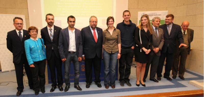 A Escola Politécnica Superior do campus de Lugo despediu a última promoción de enxeñeiros/as agrónomos/as egresados/as do campus lugués cun acto de entrega de diplomas e insignias aos 18 novos titulados/as, celebrado no salón de actos da Deputación Provincial de Lugo e no marco do que o Colexio Oficial de Enxeñeiros Agrónomos de Galicia premiou o proxecto de final de carreira desenvolvido por Beatriz Pazos Rico, que recibiu unha gratificación en metálico de 1.000 euros. Os outros dos traballos distinguidos polos membros do tribunal encargado de avaliar as 15 propostas presentadas a estes galardóns outorgados polo órgano colexiado recaeron en Iván Díaz López e Ignacio Campo Cacharrón, que recibiron cadanseu diploma acreditativo. A decano do Colexio Oficial de Enxeñeiros Agrónomos de Galicia, Pedro Calaza Martínez, foi o encargado de guiar este acto institucional, que comezou cun breve relatorio a cargo da directora xeral de Conservación da Natureza da Xunta de Galicia, Verónica Barcia Tellado, unha antiga egresada da Escola Politécnica Superior, que fixo unha breve exposición sobre os múltiples cometidos dos enxeñeiros/as agrónomos no que atinxe á conservación da natureza. O director da Escola Politécnica Superior da USC, Javier Bueno Lema, trasladou os seus parabéns aos novos/as titulados/as, ao tempo que os/as animou a que, unha vez rematado este periplo formativo, afrontaran de xeito activo o proceso de busca de emprego, xa que “aínda que o mercado de traballo é complexo, nesta profesión segue a haber oportunidades, polo que non cómpre caer no desánimo”. Bueno Lema argumentou a súa mensaxe optimista con datos de ofertas de traballo que está a recibir a Escola Politécnica Superior da USC, que, segundo indicou, denotan un pequeno aumento da demanda de enxeñeiros/as agrónomos. O acto académico de entrega de insignias e diplomas así como dos premios fin de carreria San Cidre 2014 aos novos/as enxeñeiros agrónomos titulados/as na EPS contou tamén coa presenza do alcalde de Lugo, José López Orozco, e do deputado provincial delegado da área de Cooperación e Asistencia ós Concellos, Álvaro Santos Ramos. Asemade, esta sesión serviu tamén para a presentación do libro ‘Escenarios profesionais do Enxeñeiro Agrónomo’, de Joaquín Giménez de Azcárate Moreno, editado polo Colexio Oficial de Enxeñeiros Agrónomos de Galicia con motivo da conmemoración do 60 aniversario da súa creación, e no que o autor alerta do grave problema de desertización que está a experimentar o territorio español. O vicerreitor de Coordinación e Planificación do campus de Lugo, Pedro García Herradón, reiterou na clausura deste acto os parabéns para os novos enxeñeiros/as titulados/as, ao tempo que agradeceu ao Colexio Oficial de Enxeñerios Agrónomos de Galicia a súa colaboración coa USC. García Herradón sinalou na súa intervención as novas oportunidades que abre para o campus de Lugo o Campus Terra, unha estratexia de futuro que xira a carón do concepto da terra, pero na que teñen cabida todos os centros da sede universitaria luguesa, así como as distintas liñas de investigación que desenvolve o seu persoal docente e investigador. García Herradón clausurou o acto cunha cerrada defensa da universidade pública como foro de creación e transmisión de coñecemento a todas as persoas. “Este é o principal cometido da Universidade”, sentenciou García Herradón, que logo apelou ás distintas administracións a partir deste concepto á hora de deseñar o financiamento das universidades en lugar de arbitrar estas partidas económicas en función de criterios exclusivamente cuantitativos, tales como o é a existencia dun maior ou menos número de matriculacións universitarias.
