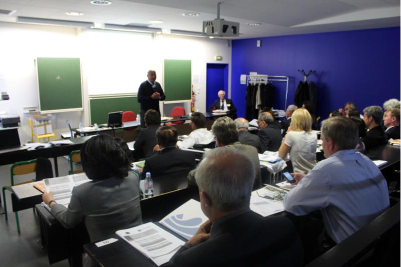 O reitor Juan Casares nun momento da súa participación neste Asemblea Xeral que o Grupo Compostela celebra en Nantes