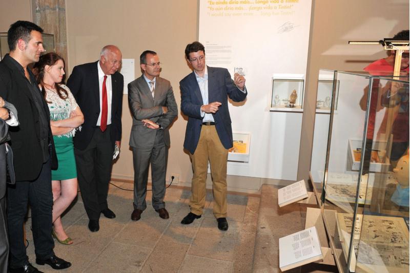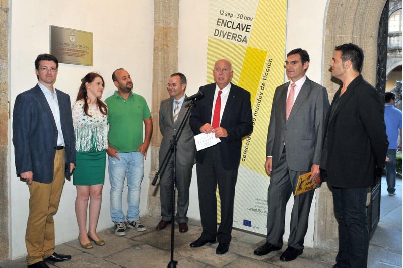‘Enclave diversa. Coleccionado mundos de ficción’ é o título da exposición que a partir deste xoves 12 se poderá visitar no Colexio de Fonseca sobre o coleccionismo cultural e os distintos enfoques e motivacións que teñen as persoas que coleccionan “cando deciden habitar mundos determinados e dotalos dun contido propio”. Esta é unha iniciativa organizada polo proxecto europeo campUSCulturae. A inauguración desta exposición desenvolveuse no propio Colexio de Fonseca nun acto que presidiu o reitor Juan Casares e ao que estaba prevista a asistencia ademais do conselleiro de Cultura, Educación e Ordenación Universitaria, Xeús Vázquez; e do coordinador de campUSCulturae, Xosé A. Neira Cruz. Tamén estiveron presentes Hakan Casares, da Fundación Carlos Casares; Fátima García Doval, Álvaro Gutiérrez Baños e Pedro Rey, en representación das catro coleccións expostas. A mostra inclúe as coleccións ‘Ortega-Gutiérrez Baños’ de libros despregables; ‘O Principiño’, mundos e modos; Tintín, a evolución da personaxe a través do texto e do contexto de Hergé; e a dedicada ás marabillas do mundo de Alicia. Esta iniciativa parte da idea de que os obxectos culturais son significativos e importantes, no ámbito particular, principalmente polas historias que os constrúen e polas asociacións que se establecen entre o coleccionista e o obxecto. Neste senso, ‘Enclave diversa’ presenta catro propostas nas que os libros e a literatura supoñen os puntais da mostra. A Colección ‘Ortega-Gutiérrez Baños’ de libros despregables é un percorrido pola historia, a técnica e a fabricación dende os primeiros libros coñecidos ata os actuais pop-up. É un dos conxuntos no seu xénero máis completos e importantes do mundo, sendo esta a primeira vez que se expón en Galicia. Co lema ‘ O Principiño, mundos e modos’, preséntase unha sección realizada a partir da colección organizada ao longo da súa vida polo escritos Carlos Casares e que custodia actualmente a Fundación que leva o seu nome. Xunto a esta, inclúese tamén ‘Tintín, a evolución do personaxe a través do texto e do contexto de Hergé’, proposta creada a partir da colección particular elaborada por Pedro Rey. Pecha o conxunto, ‘As marabillas do mundo de Alicia’, unha aproximación ao personaxe e a obra de Lewis Carroll que xurde da colección composta por Fátima García Doval. A exposición poderá visitarse ata o 30 de novembro. O reitor presidiu o acto inaugural ante a presenza do conselleiro, dos coleccionistas implicados na mostra e do coordinador de campUSCulturae. Foto: Santi Alvite Pedro Rey ofrece explicacións sobre a súa colección dedicada a Tinti. Foto: Santi Alvite