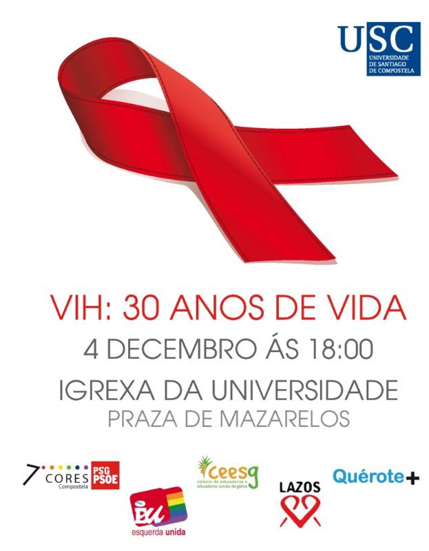Coincidindo coa celebración do Día Mundial da Loita contra a Sida, a Universidade de Santiago organiza este mércores 4 unha xornada de reflexión profunda acerca dos 30 anos de vida do VIH, avaliando tanto a vertente científica coma o seu impacto social. Será a Igrexa de Mazarelos o lugar no que a partir das 18.00 horas o médico do CHUS Antonio Antela, coordinador da Unidade de Enfermidades Infecciosas e profesor da USC, pronuncie a conferencia ‘A infección por VIH en 2013: fitos conseguidos e desafíos pendentes’. A partir desta intervención comezará un debate no que, moderado polo vicerreitor Francisco Durán, participarán a presidenta do Colexio de Educadoras e Educadores Sociais de Galicia, Sofía Riveiro; o responsable de Lazos Compostela, Javier Rocamora; o psicólogo Manuel Alonso; a responsable de Aleas-EU, Noel Dopazo; a traballadora dun centro Quérote + Noa Tilve Cabada; e o coordinador de 7 Cores Compostela-PSdeG, Gonzalo Diz. O broche final porao o Espazo de Danza da USC cunha performance realizada ex profeso para a ocasión.