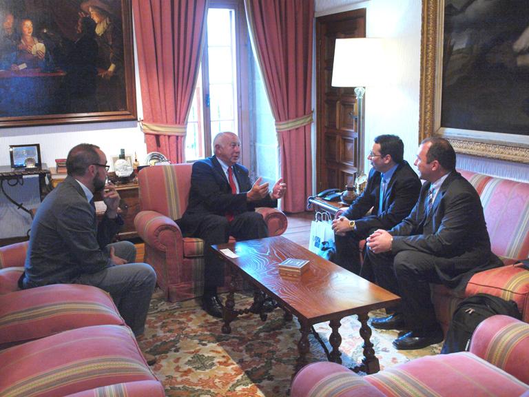 O reitor Juan Casares recibiu este xoves 5 na Reitoría compostelá ao director do Centro de Ciencias Agrarias, Ambientais e Biolóxicas da Universidade Federal do Recôncavo da Bahía (CCAAB), Alexandre Américo Almassy Junior, e ao vicedirector do mesmo centro, Marcos Gonçalves Lhano, xunto aos que tamén estivo presente na xuntanza o vicerreitor de Relacións Exteriores e Internacionalización, Víctor Millet. O encontro celebrado na Reitoría compostelá serviu tamén para avanzar no desenvolvemento dun convenio marco subscrito por ambas universidades e que regula o intercambio de persoal docente e investigador e estudantado; a formación de docentes e investigadores/as; o intercambio de información e documentación; a cooperación en cursos de grao e posgrao; a realización de seminarios, conferencias, coloquios, encontros ou xornadas; e a publicacións e proxectos científicos. O obxectivo xeral é promover o desenvolvemento e difusión da cultura e, en especial, o desenvolvemento do ensino superior de grao e posgrao e a investigación científica e tecnolóxica. Ademais, dentro deste acordo, ambas universidades xa contemplan a posta en marcha dun programa de intercambio de profesorado e de alumnos. A USC e a Universidade Federal do Recôncavo da Bahía asinaron tamén un acordo marco de colaboración. Foto: Alfonso-Servimav